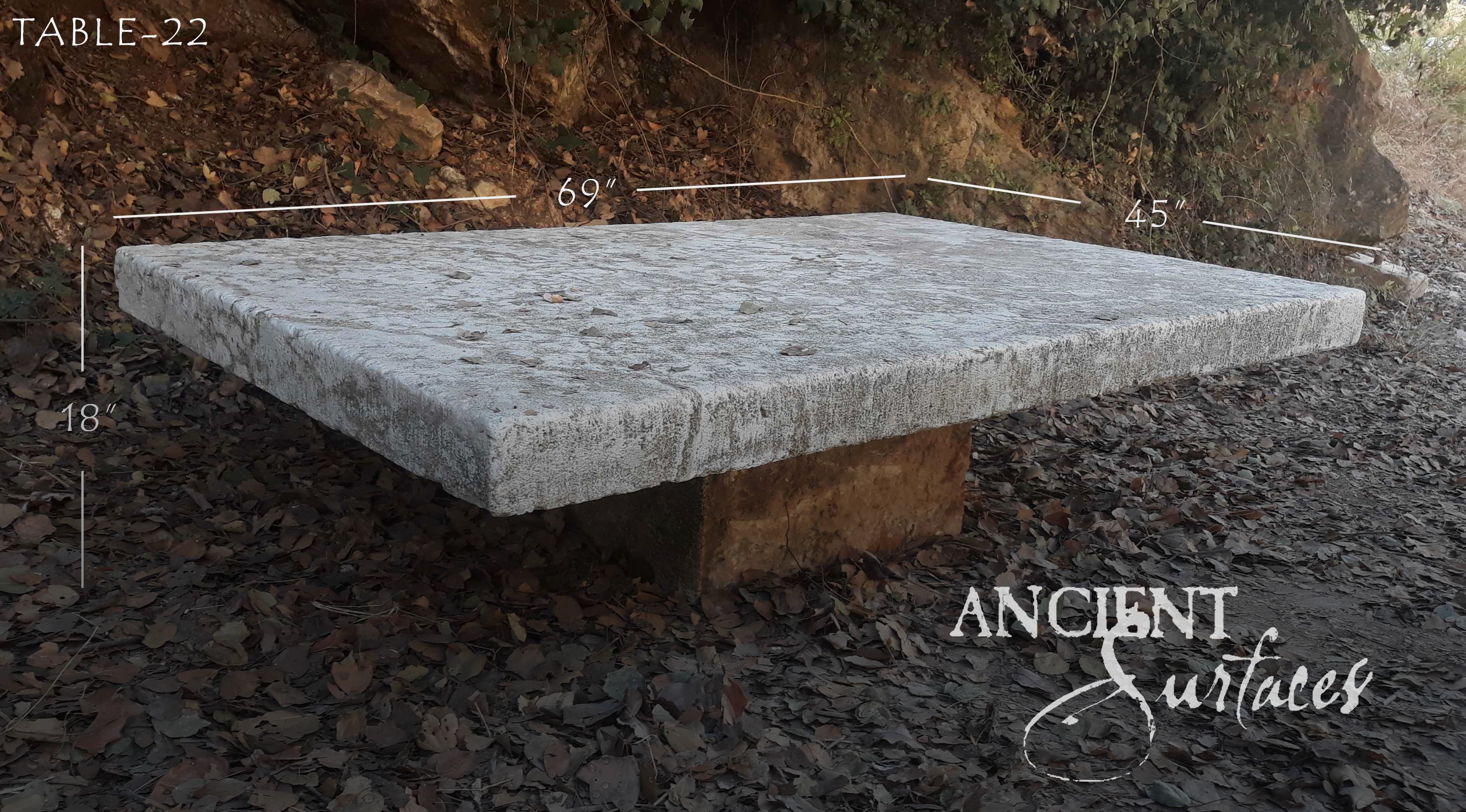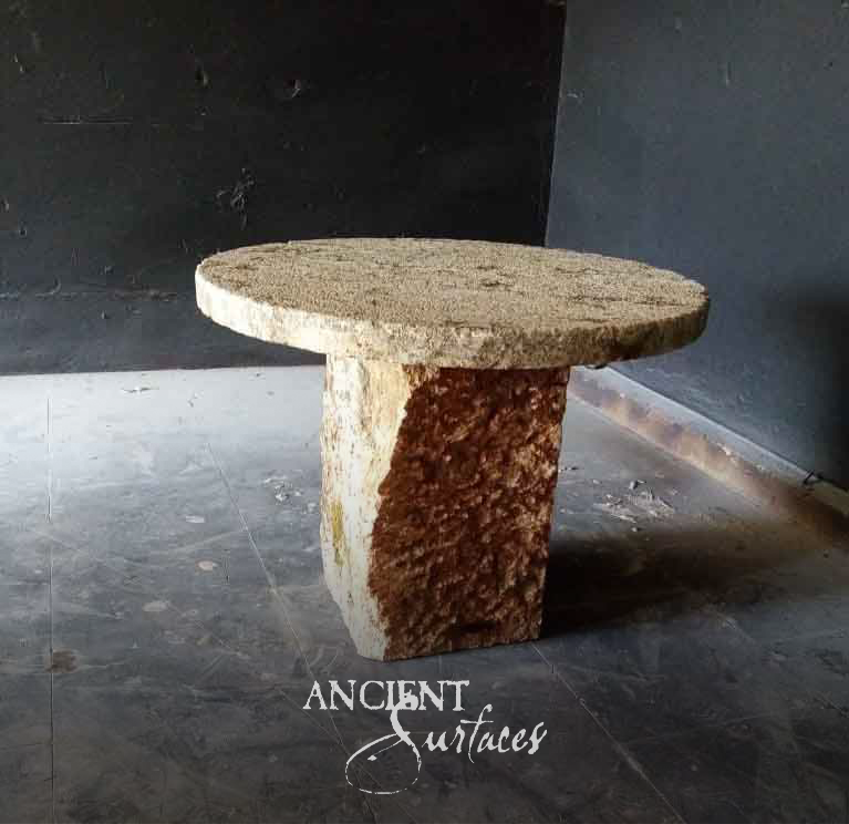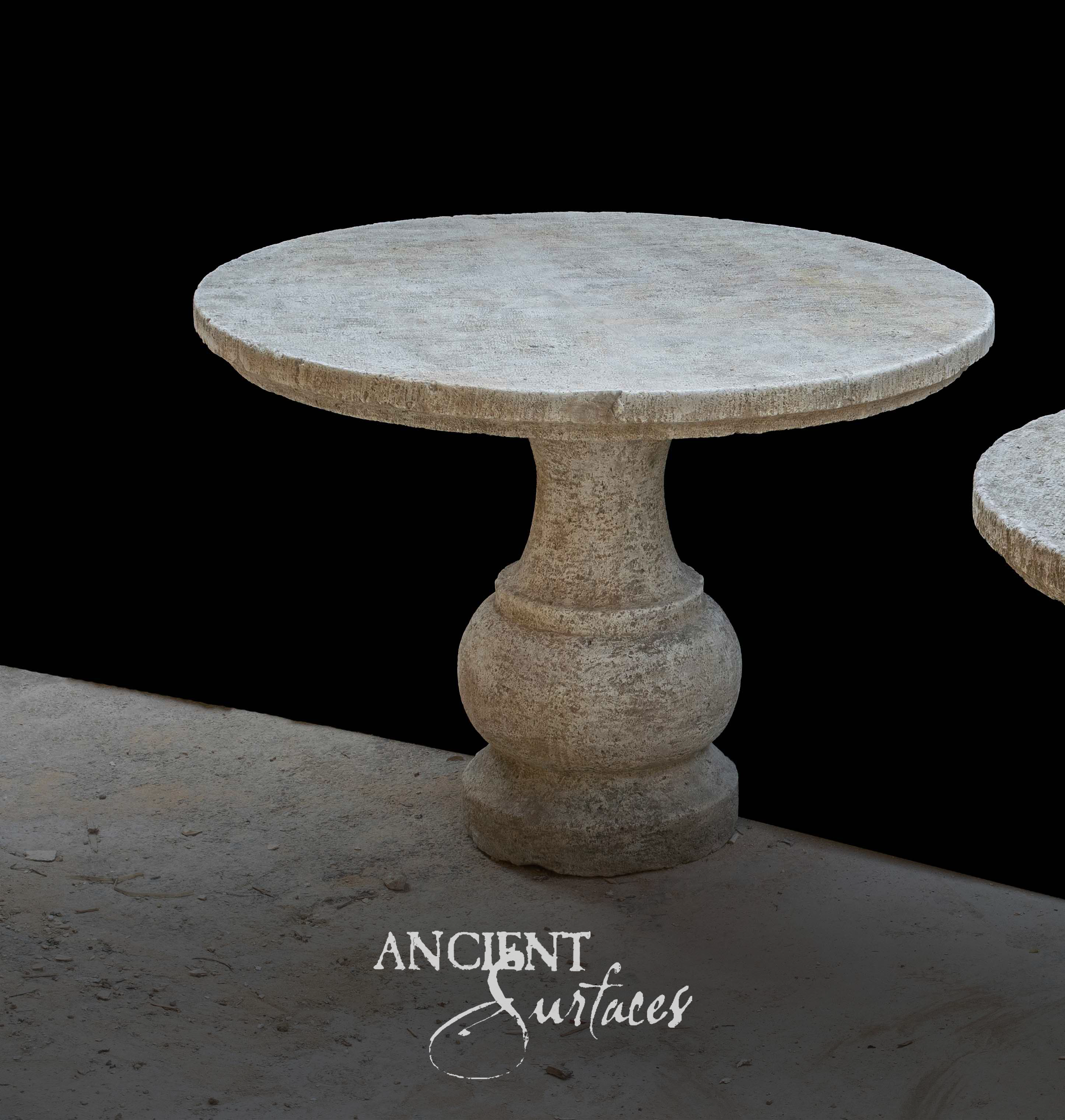At Ancient Surfaces, each reclaimed limestone table is selected for its character and proportion. No two are identical. Some feature monolithic pedestal bases shaped by hand. Others rest on simple block supports that highlight the weight of the stone slab above. Every mark tells a story. Every surface reflects a past that continues into the present.